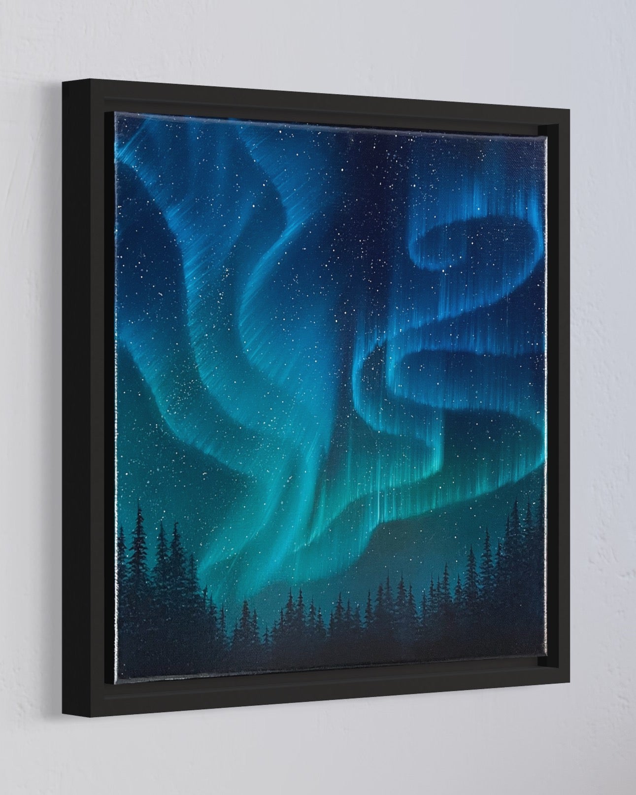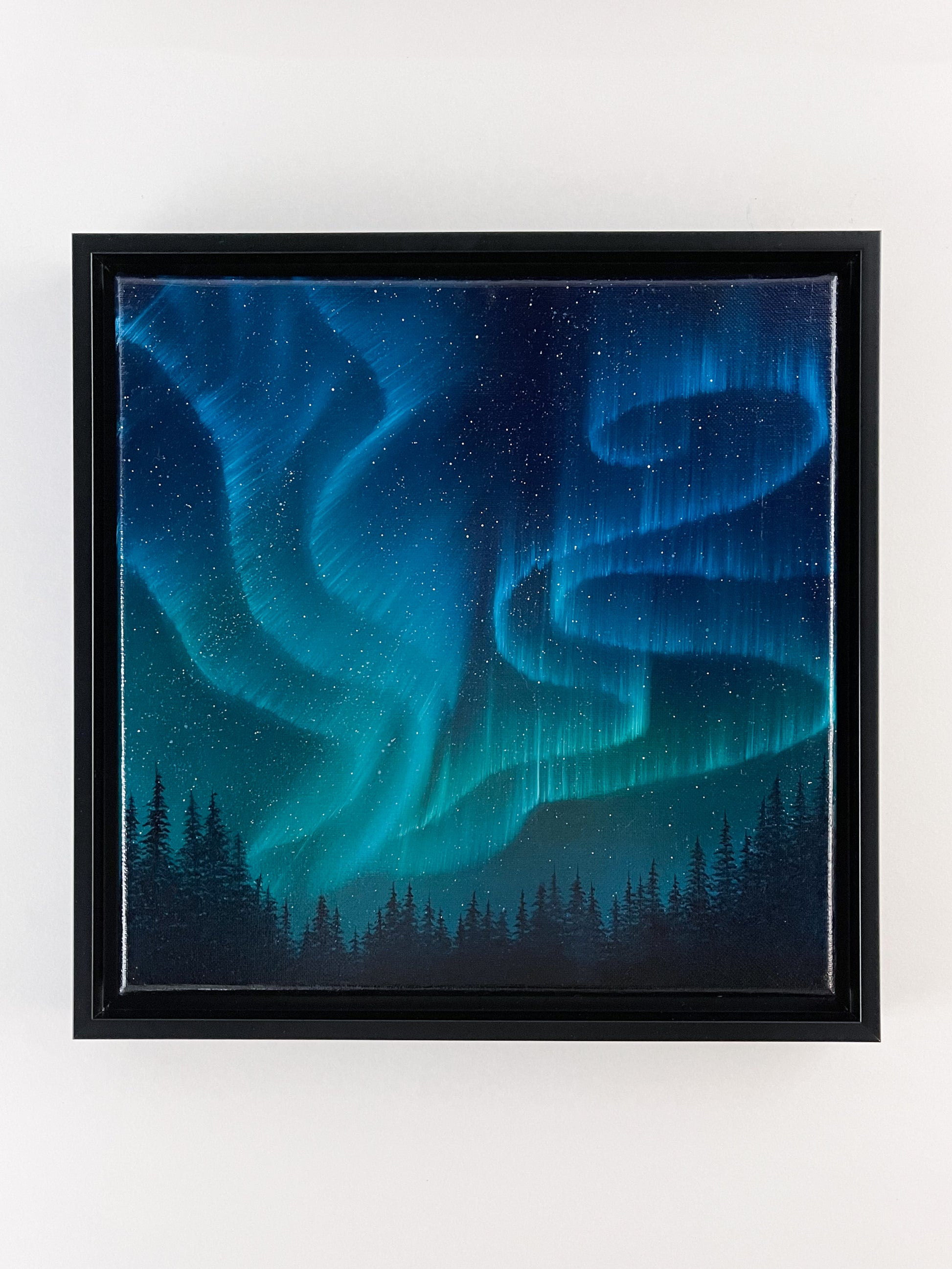 Beautiful northern lights oil painting on canvas.