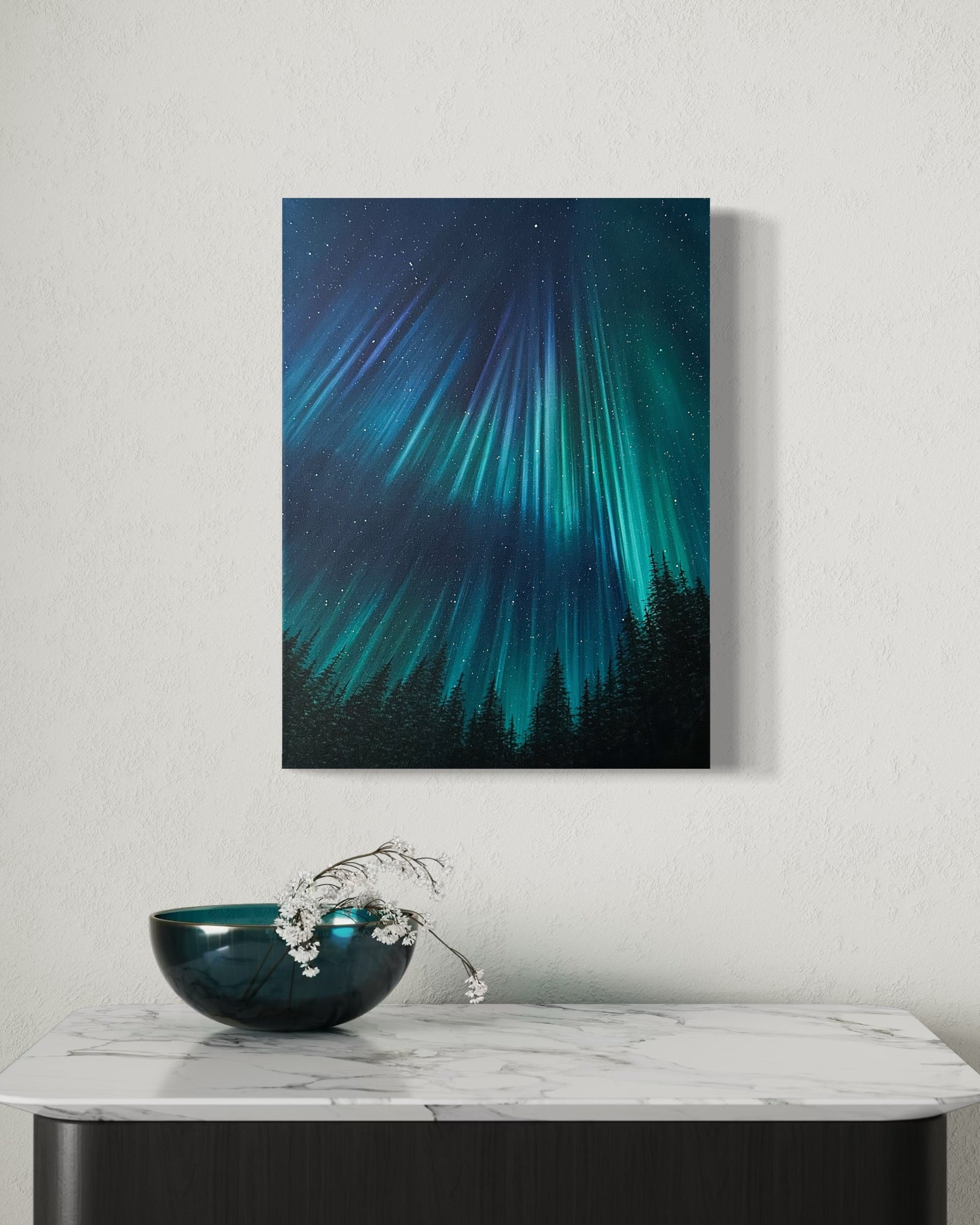 The artwork is ready to hang, with professional-grade hanging hardware installed. Please allow 2-3 weeks for shipping, as each painting is packed with the utmost care to ensure a safe arrival.