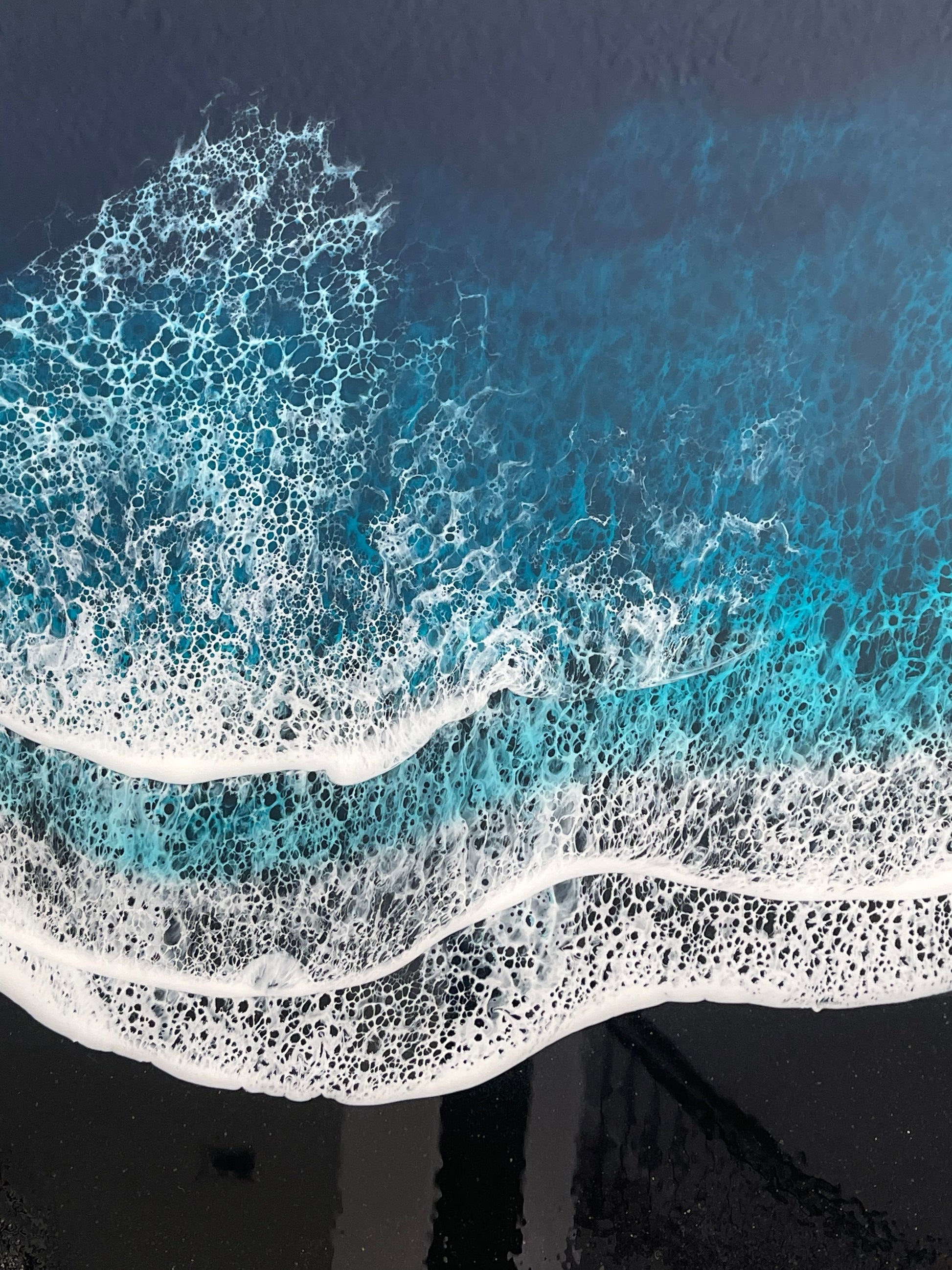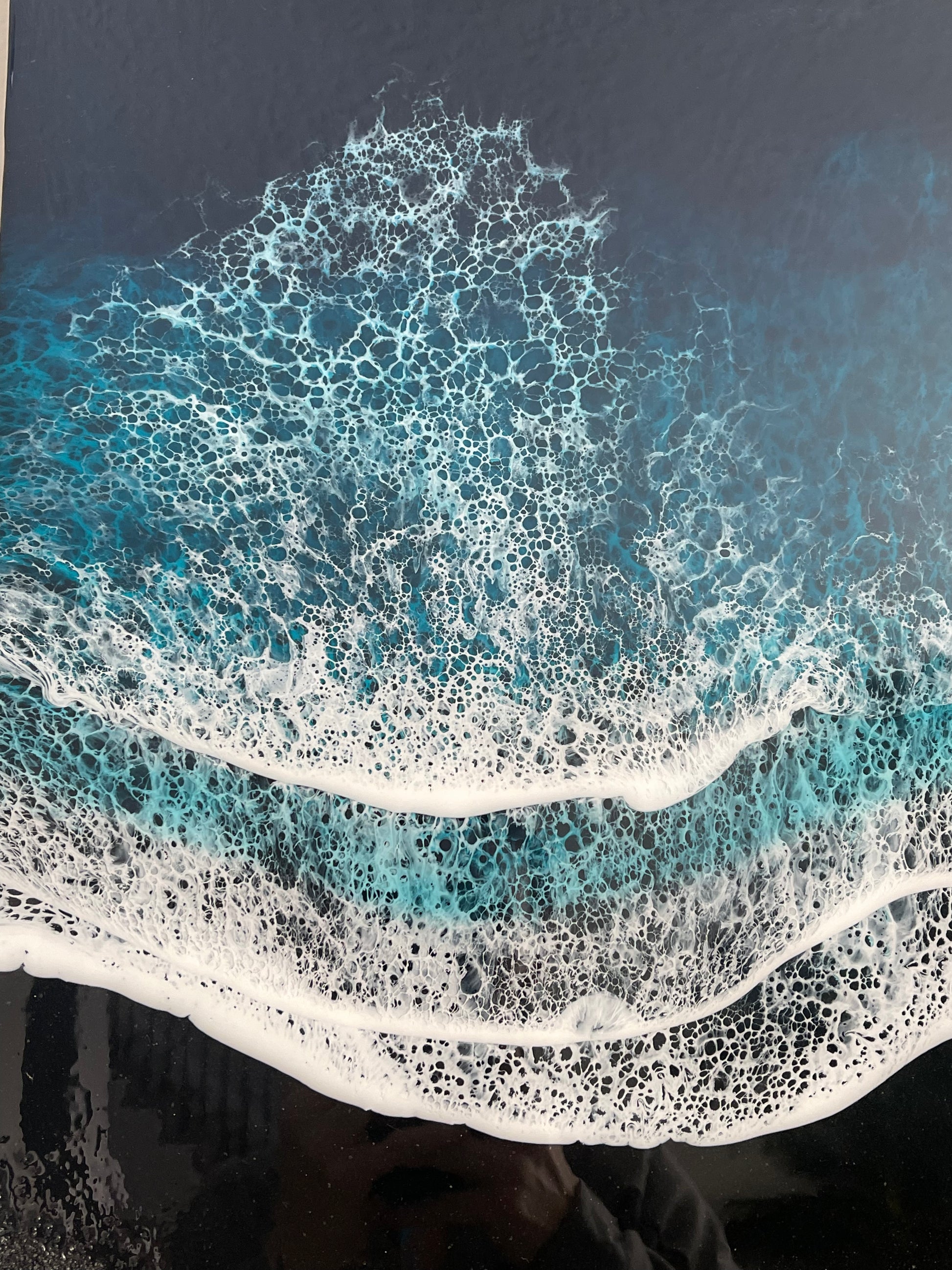 With its stunning design and captivating details, this dark ocean waves resin art piece is a must-have for anyone looking to add a touch of modern sophistication to their home or office. Don't miss your chance to own this breathtaking piece of art today!