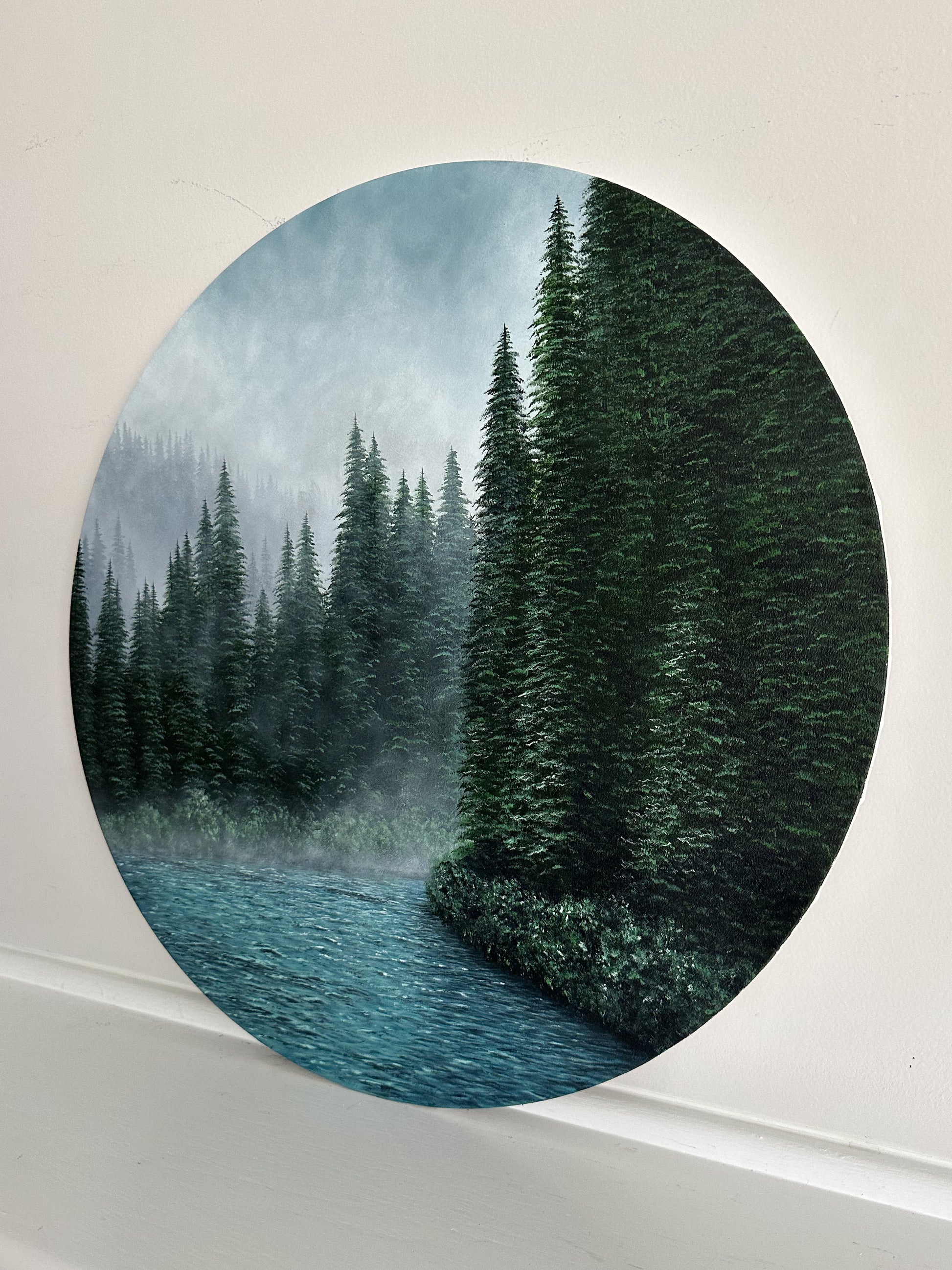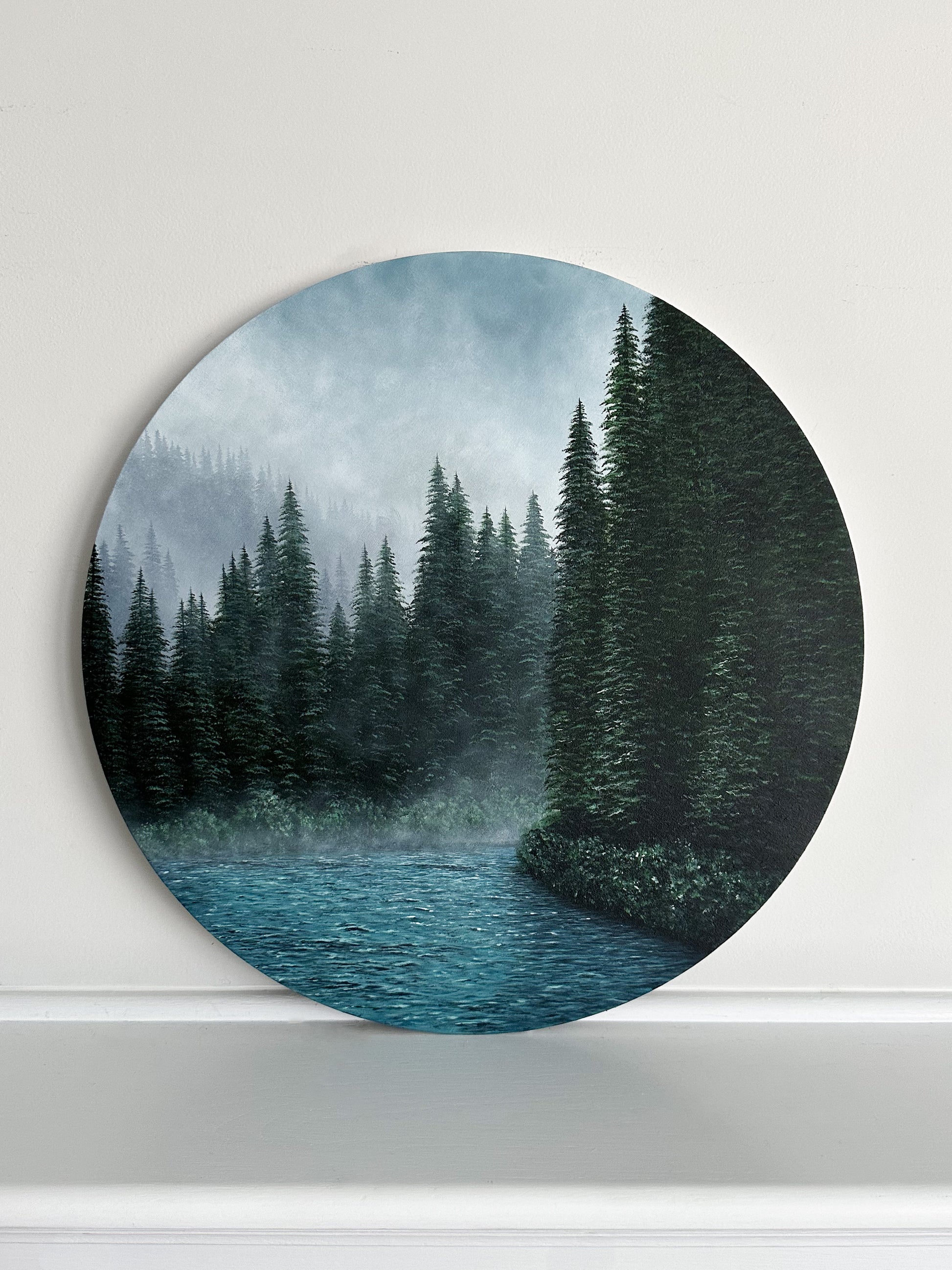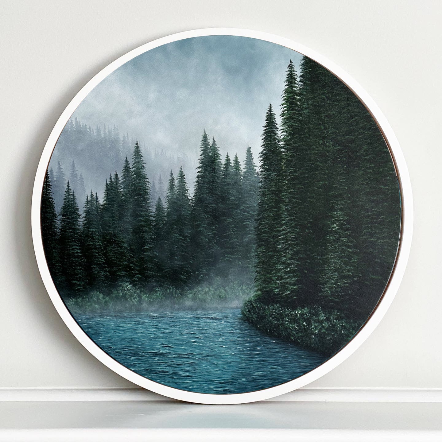 Using acrylic on a canvas wrapped circle panel, I have captured the essence of this tranquil scene. The circular format adds a unique and contemporary touch, inviting you to explore the artwork from every angle.