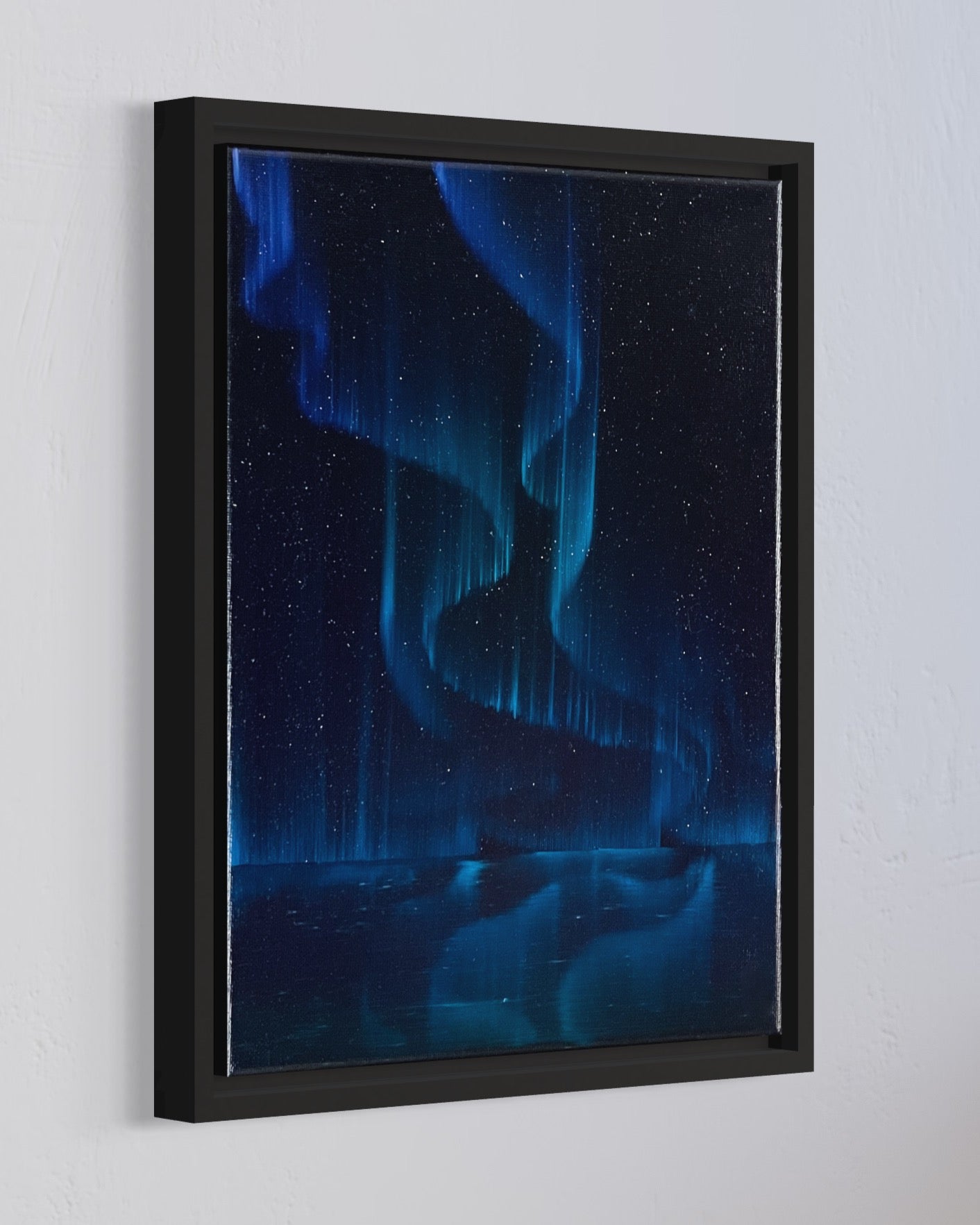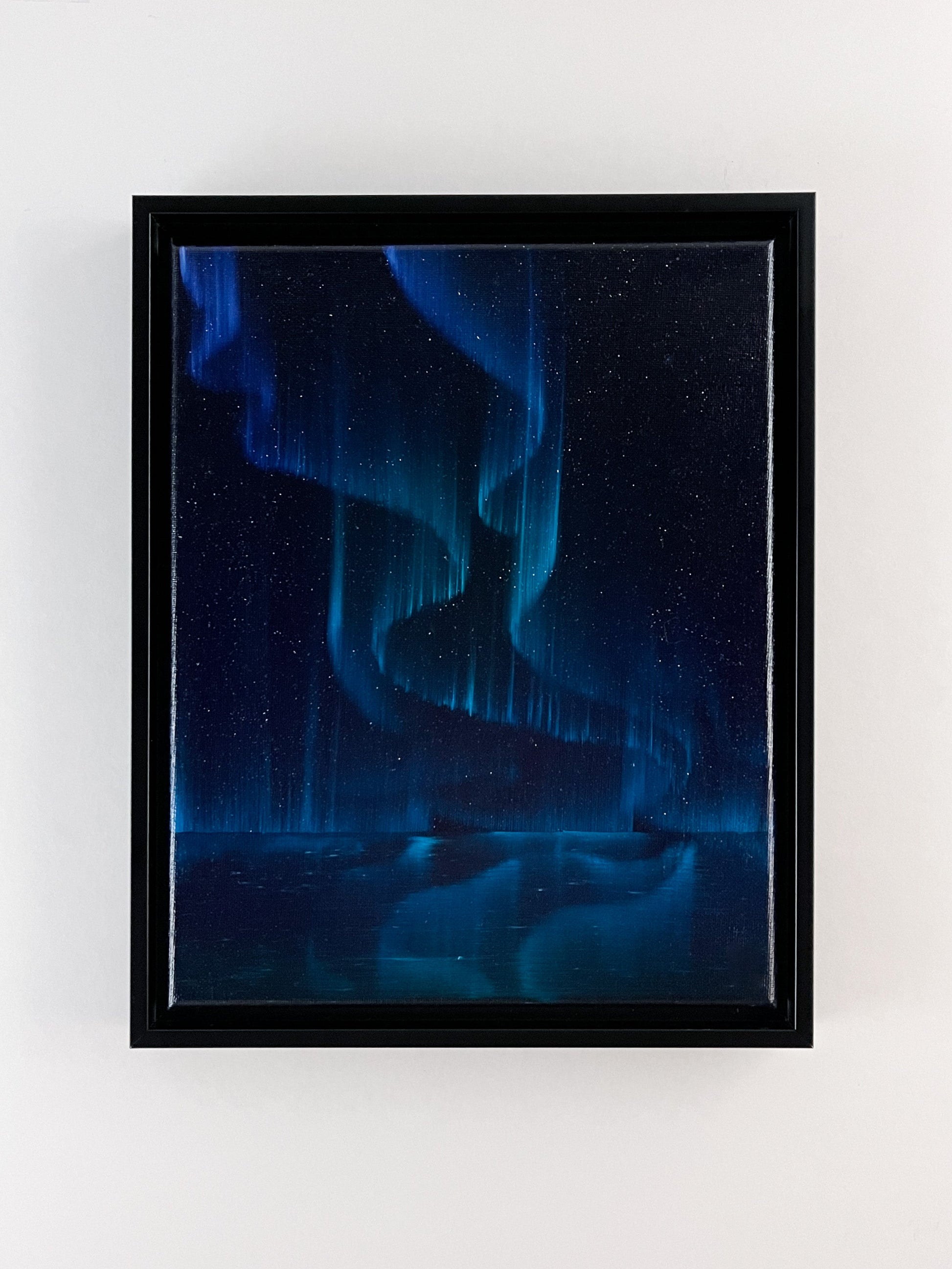 Beautiful northern lights oil painting on canvas.