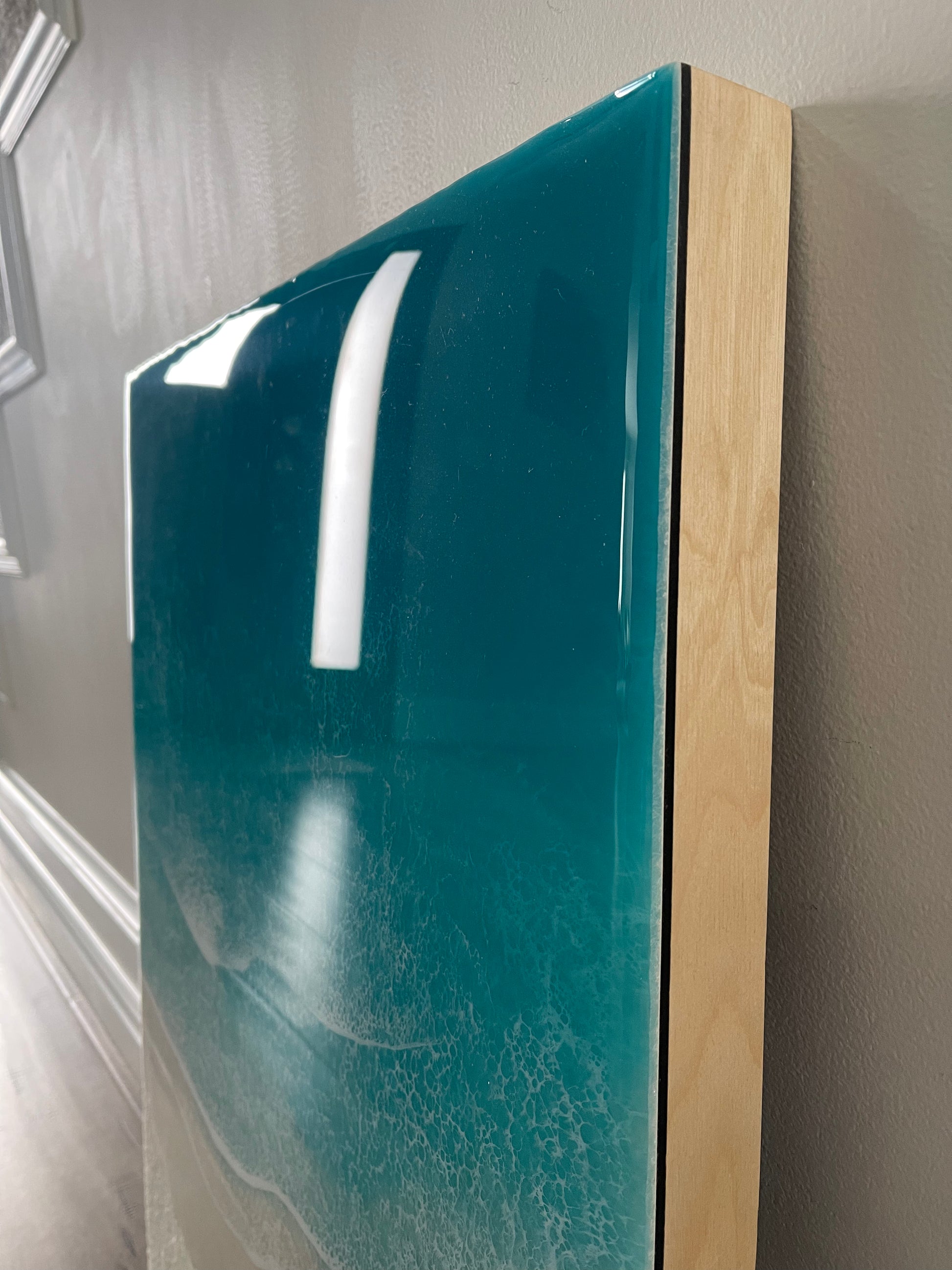 With its stunning design and unique materials, this turquoise ocean waves resin art piece is a must-have for anyone looking to add a touch of natural beauty to their space. Don't miss your chance to own this breathtaking piece of art today!