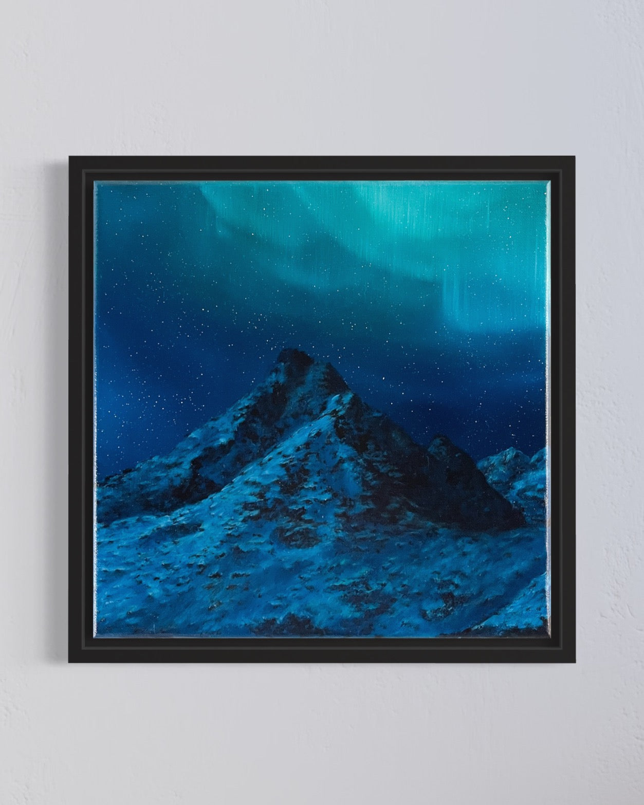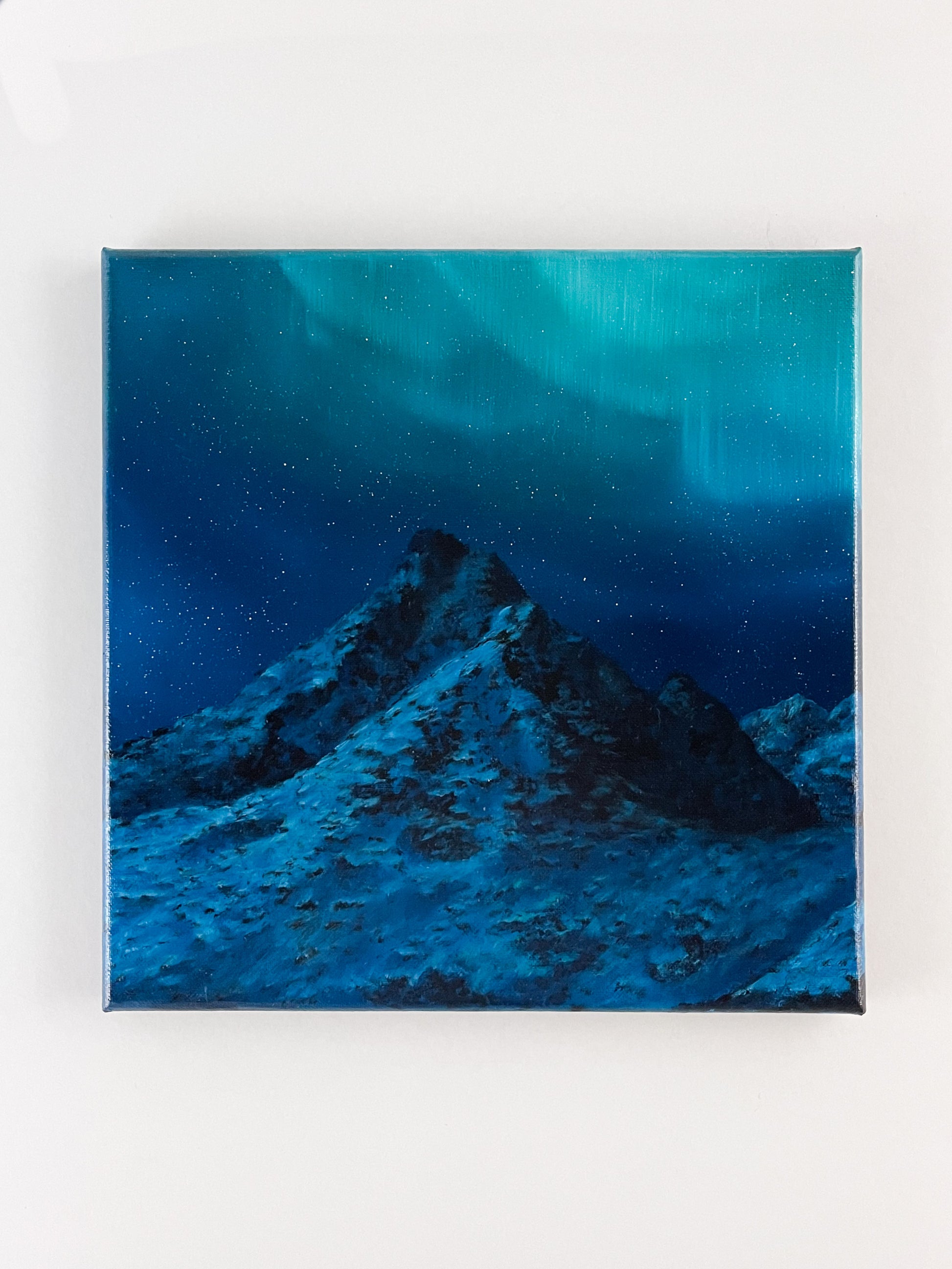 Beautiful northern lights oil painting on canvas.
